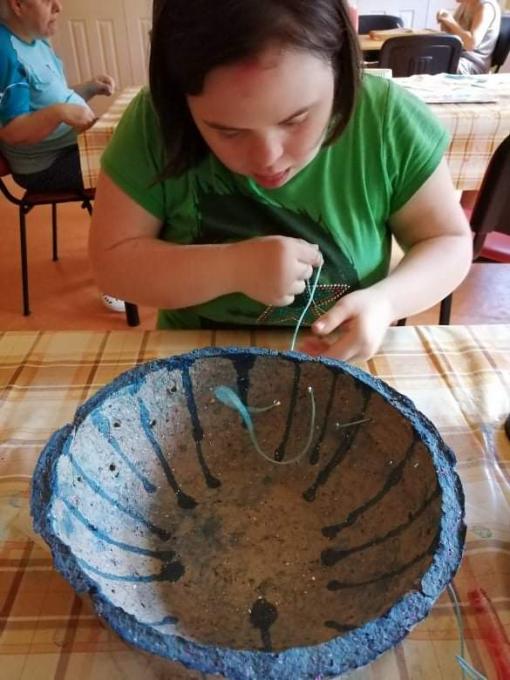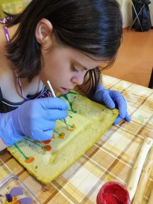 Az épület földszintjén nappali ellátás keretében foglalkoztatás zajlik a műhelyekben, ahová az otthon lakói mellett a családokból, lakóotthonokból is érkeznek ügyfelek.
