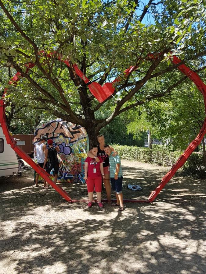 Nagyon jó helyen volt a Civil sziget, és azon belül is a Down Alapítvány tábora. Körülöttünk a hatalmas platánfa árnyékában hűsöltek, pihentek a fiatalok, és szó szerint a nap bármely szakában özönlöttek, hogy részt vegyenek programjainkon.