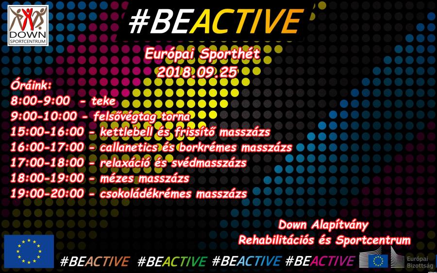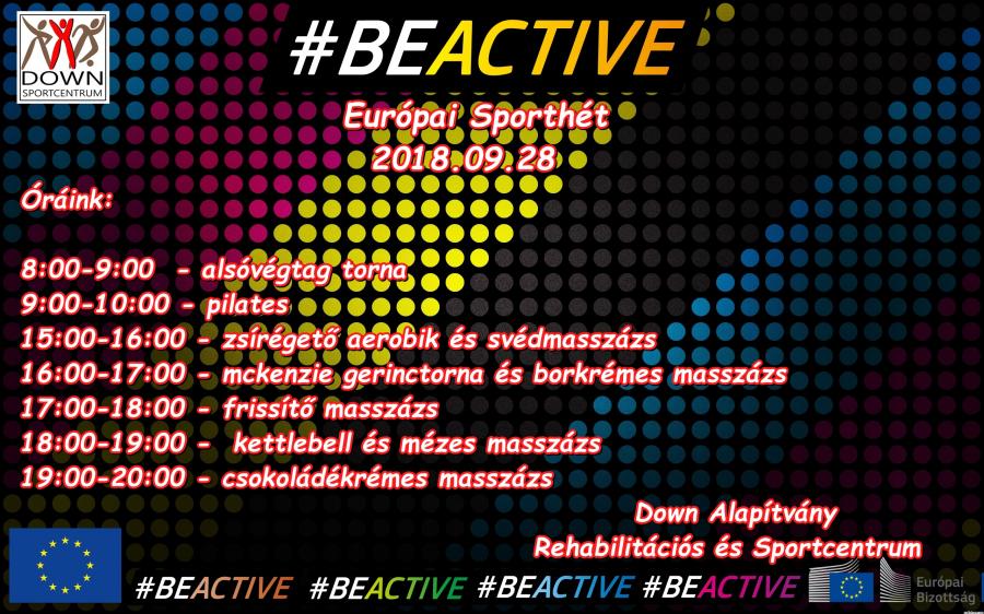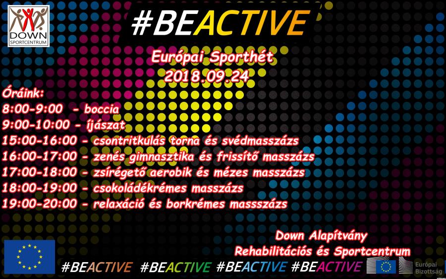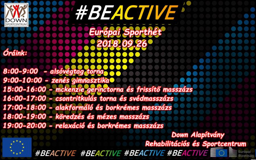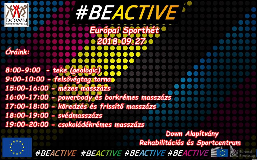 Az Európai Sporthét keretén belül 2018.09.24-28. között ingyenes órákat tartunk a Down Alapítvány Rerhabilitációs és Sportcentrumába.