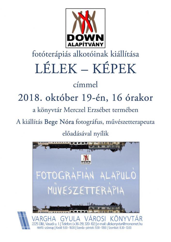 Lélek − képek címmel 2018.10.19-én 16 órakor fotókiállítás nyílt  a Vargha Gyula Városi Könyvtárban (2225. Üllő, Vasadi u. 1.) a Down Alapítvány Fotó- és művészetteráiás résztvevőinek műveiből.