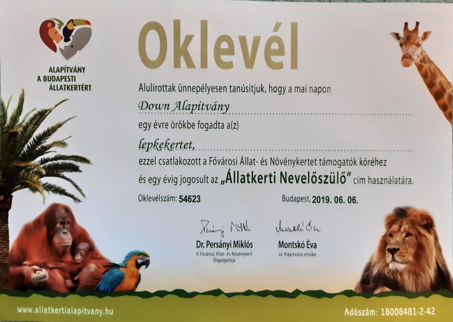 Annyira tetszettek a fotók az állatkertnek, hogy felajánlották a Down Alapítványnak, fogadja örökbe a most nyíló Lepkekertet. Csodálatos hely, mi is illene hozzánk, tevékenységünkhöz méltóbb szimbólum, mint a pillangó!