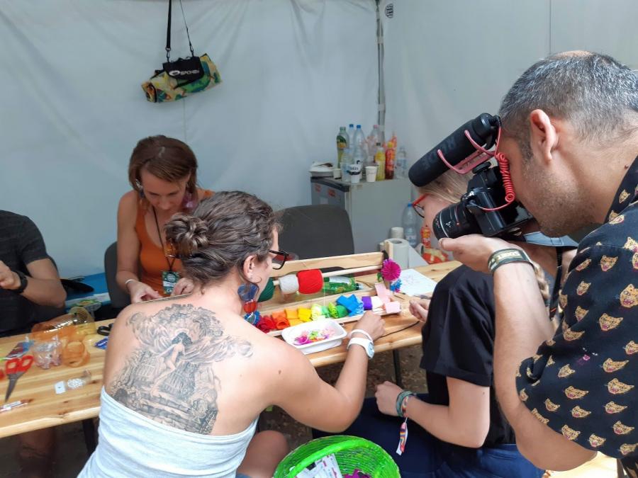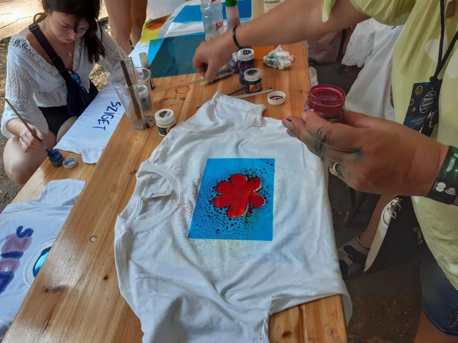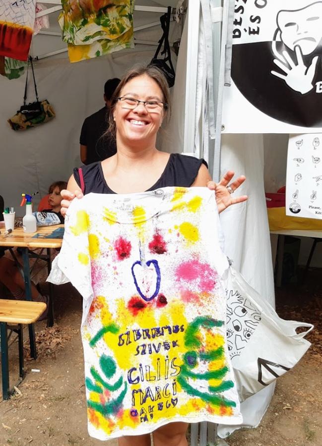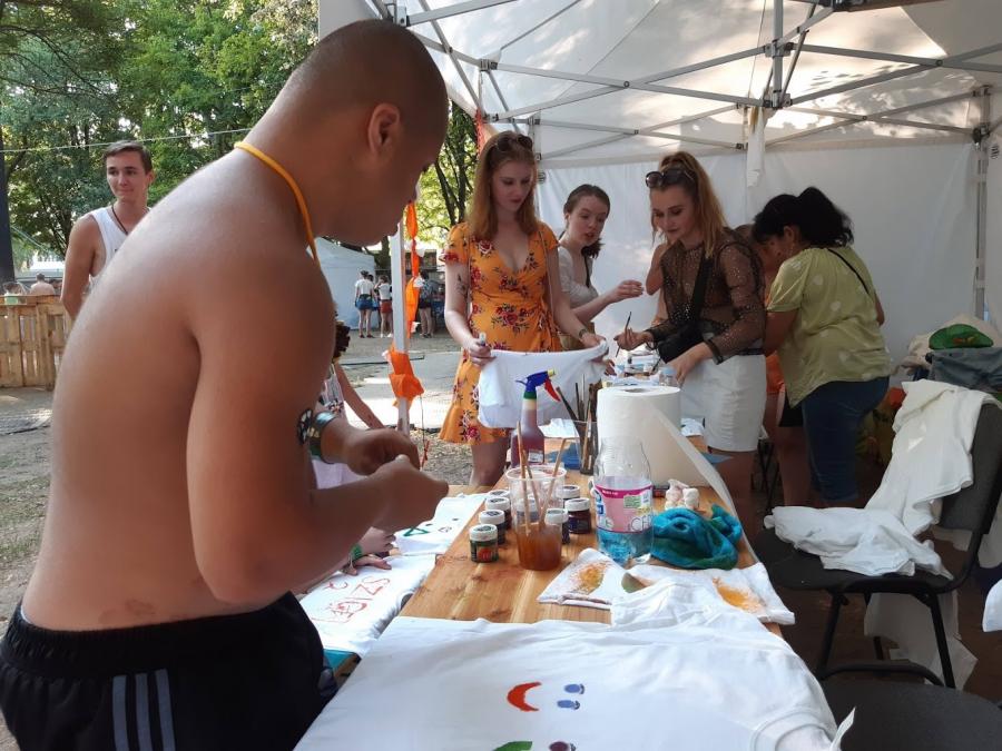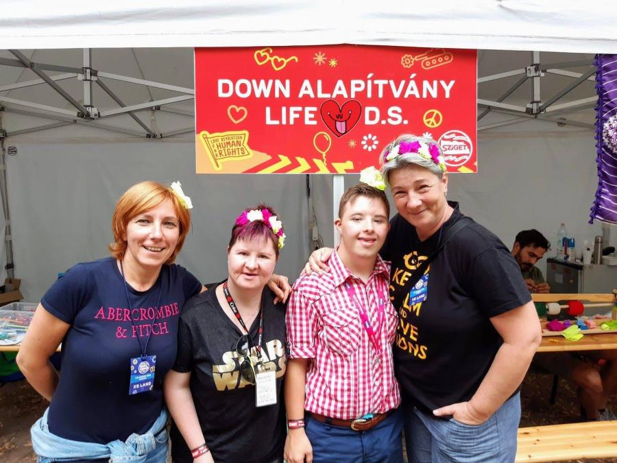 Idén is szerepelt a Down Alapítvány a szigeten Life with Down-syndrome című programjával. Egy héten keresztül minden nap integrált kézműves programokkal vártuk a szigetlakókat az XS Land területén. Gyöngyöt fűztünk, PET palackból fülbecalót, virág fejdíszt, nyakláncot, kardíszt, és pólóékszereket készítettünk. Fotóterápiás rejvény megfejtéséért, és mandala színezésért is lehetett nálunk pecsétet kapni. Volt arcfestés, testfestés, és ami a legtöbb turistát odavonzotta, pólófestés. Az XS Landen mozgássérültekkel, vakokkal és gyengénlátókkal, siketekkel együtt folytak programjaink. Magunk is kipróbálhattuk a vak labirintust, vak pinpongot, mászófalat szemkötővel. Jelbeszédet tanulhattunk, kerekesszékkel akadálypályán próbálkozhattunk. Nagy élmény volt megtapasztalni a különböző érzékszerv kiesésével végzett tréfás gyakorlatokat. "Munkaidőnk" lejárta után a Sziget többi érdekes és színes programján is részt vehettünk. Hatalmas élményt jelentett számunkra a cirkusz magas színvonalú előadása, és a Lumináriumba is lehetőségünk volt bejutni. Down-szindrómás segítőink is nagyon jól feltalálták magukat. Önfeledten fotózkodhattak, festhettek cipőt, és bulizhattak a sziget elfogadó közönségével.