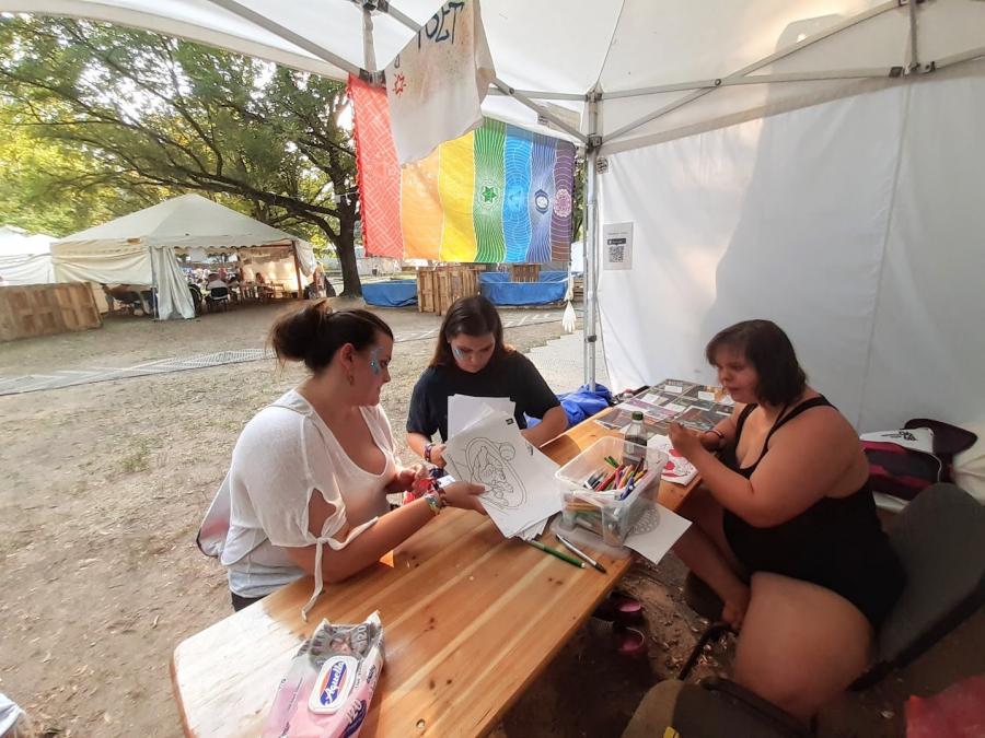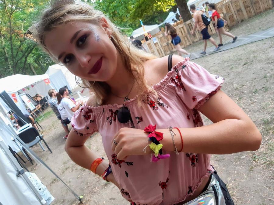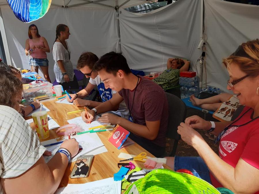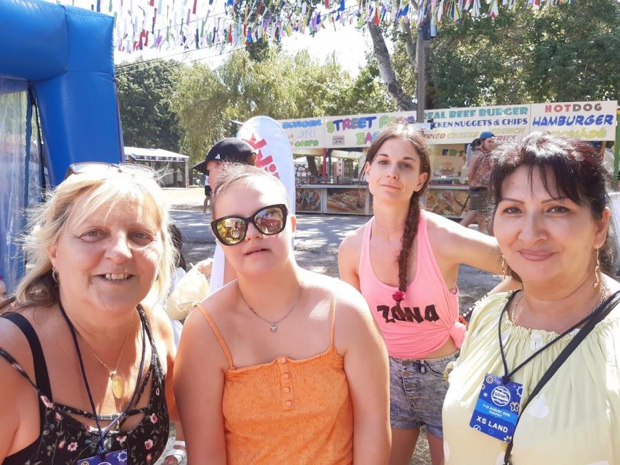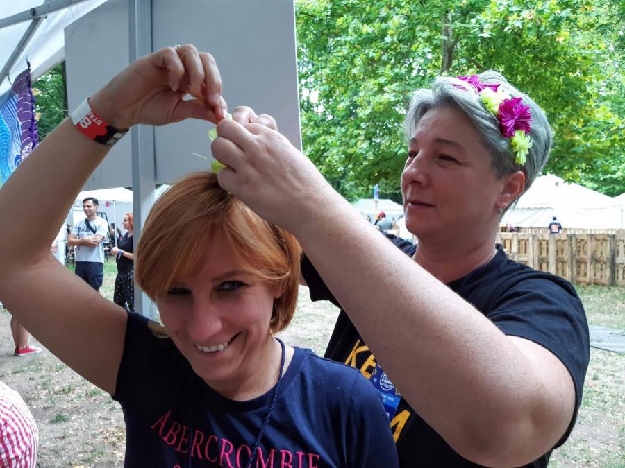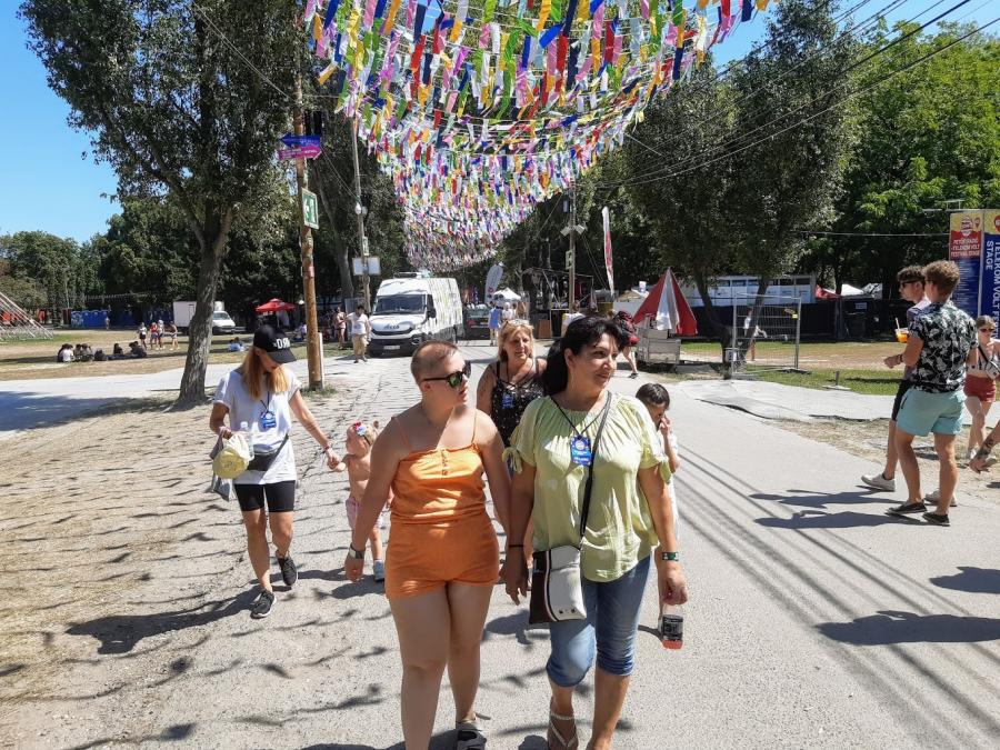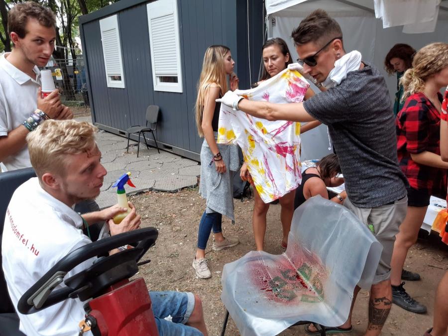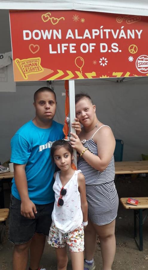 Idén is szerepelt a Down Alapítvány a szigeten Life with Down-syndrome című programjával. Egy héten keresztül minden nap integrált kézműves programokkal vártuk a szigetlakókat az XS Land területén. Gyöngyöt fűztünk, PET palackból fülbecalót, virág fejdíszt, nyakláncot, kardíszt, és pólóékszereket készítettünk. Fotóterápiás rejvény megfejtéséért, és mandala színezésért is lehetett nálunk pecsétet kapni. Volt arcfestés, testfestés, és ami a legtöbb turistát odavonzotta, pólófestés. Az XS Landen mozgássérültekkel, vakokkal és gyengénlátókkal, siketekkel együtt folytak programjaink. Magunk is kipróbálhattuk a vak labirintust, vak pinpongot, mászófalat szemkötővel. Jelbeszédet tanulhattunk, kerekesszékkel akadálypályán próbálkozhattunk. Nagy élmény volt megtapasztalni a különböző érzékszerv kiesésével végzett tréfás gyakorlatokat. "Munkaidőnk" lejárta után a Sziget többi érdekes és színes programján is részt vehettünk. Hatalmas élményt jelentett számunkra a cirkusz magas színvonalú előadása, és a Lumináriumba is lehetőségünk volt bejutni. Down-szindrómás segítőink is nagyon jól feltalálták magukat. Önfeledten fotózkodhattak, festhettek cipőt, és bulizhattak a sziget elfogadó közönségével.