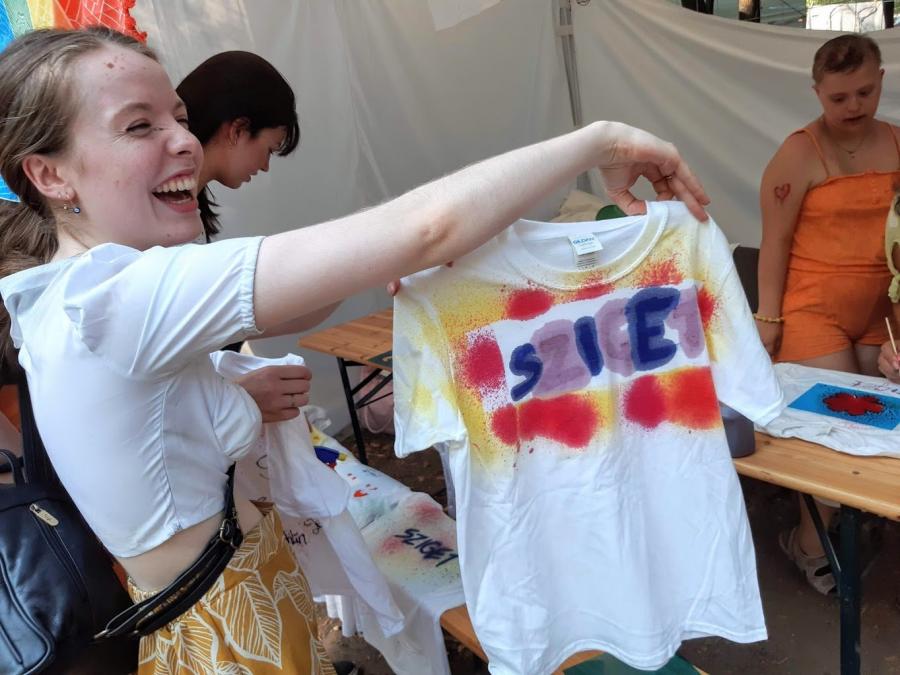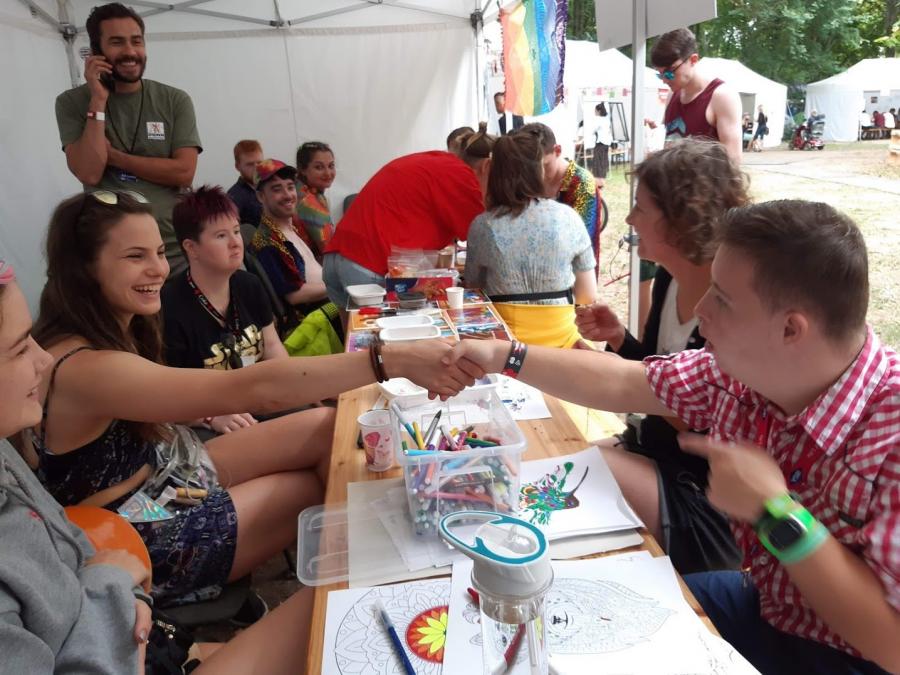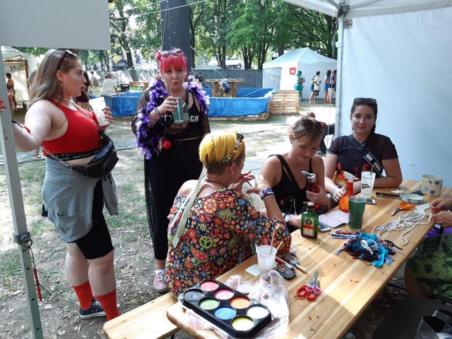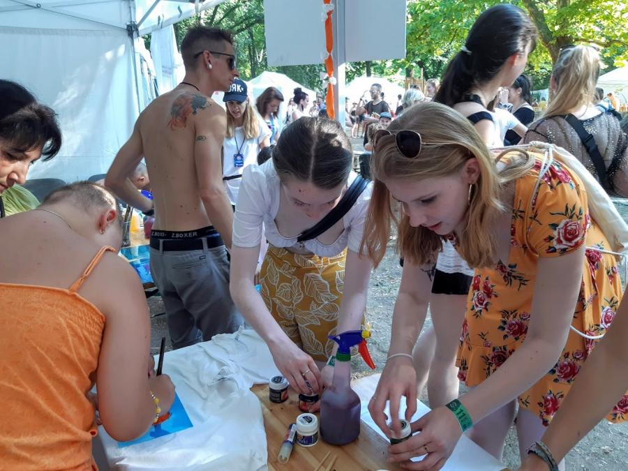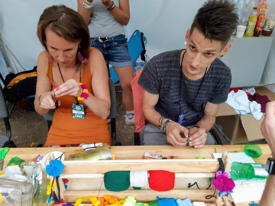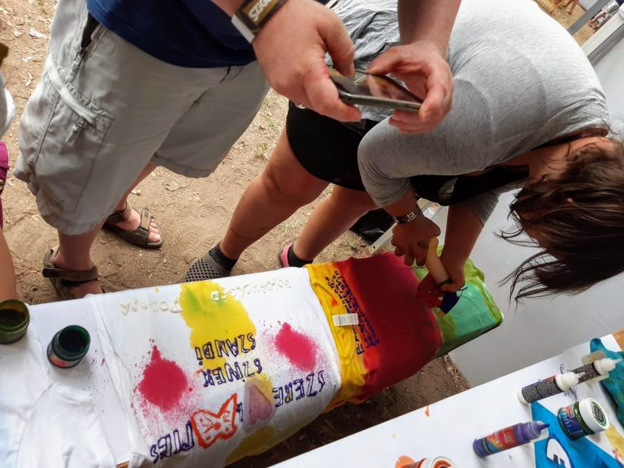 Idén is szerepelt a Down Alapítvány a szigeten Life with Down-syndrome című programjával. Egy héten keresztül minden nap integrált kézműves programokkal vártuk a szigetlakókat az XS Land területén. Gyöngyöt fűztünk, PET palackból fülbecalót, virág fejdíszt, nyakláncot, kardíszt, és pólóékszereket készítettünk. Fotóterápiás rejvény megfejtéséért, és mandala színezésért is lehetett nálunk pecsétet kapni. Volt arcfestés, testfestés, és ami a legtöbb turistát odavonzotta, pólófestés. Az XS Landen mozgássérültekkel, vakokkal és gyengénlátókkal, siketekkel együtt folytak programjaink. Magunk is kipróbálhattuk a vak labirintust, vak pinpongot, mászófalat szemkötővel. Jelbeszédet tanulhattunk, kerekesszékkel akadálypályán próbálkozhattunk. Nagy élmény volt megtapasztalni a különböző érzékszerv kiesésével végzett tréfás gyakorlatokat. "Munkaidőnk" lejárta után a Sziget többi érdekes és színes programján is részt vehettünk. Hatalmas élményt jelentett számunkra a cirkusz magas színvonalú előadása, és a Lumináriumba is lehetőségünk volt bejutni. Down-szindrómás segítőink is nagyon jól feltalálták magukat. Önfeledten fotózkodhattak, festhettek cipőt, és bulizhattak a sziget elfogadó közönségével.