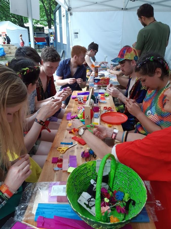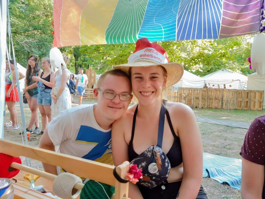 Idén is szerepelt a Down Alapítvány a szigeten Life with Down-syndrome című programjával. Egy héten keresztül minden nap integrált kézműves programokkal vártuk a szigetlakókat az XS Land területén. Gyöngyöt fűztünk, PET palackból fülbecalót, virág fejdíszt, nyakláncot, kardíszt, és pólóékszereket készítettünk. Fotóterápiás rejvény megfejtéséért, és mandala színezésért is lehetett nálunk pecsétet kapni. Volt arcfestés, testfestés, és ami a legtöbb turistát odavonzotta, pólófestés. Az XS Landen mozgássérültekkel, vakokkal és gyengénlátókkal, siketekkel együtt folytak programjaink. Magunk is kipróbálhattuk a vak labirintust, vak pinpongot, mászófalat szemkötővel. Jelbeszédet tanulhattunk, kerekesszékkel akadálypályán próbálkozhattunk. Nagy élmény volt megtapasztalni a különböző érzékszerv kiesésével végzett tréfás gyakorlatokat. "Munkaidőnk" lejárta után a Sziget többi érdekes és színes programján is részt vehettünk. Hatalmas élményt jelentett számunkra a cirkusz magas színvonalú előadása, és a Lumináriumba is lehetőségünk volt bejutni. Down-szindrómás segítőink is nagyon jól feltalálták magukat. Önfeledten fotózkodhattak, festhettek cipőt, és bulizhattak a sziget elfogadó közönségével.