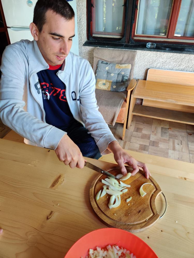 Solymosi Ábel vagyok. A 10. kerületben lakom a Bihari utcában. Szabadidőmben szeretek utazni, menni mindenhova, tv-t nézni, gépezni és elmenni a LIDL-be bevásárolni. A Zágrábi utcában dolgozom a Down Alapítványnál. Szoktam festeni, papírt tépkedni, meg rajzolni. Azért szeretek itt lenni, mert itt vannak ismerősök, és ők jó fejek.