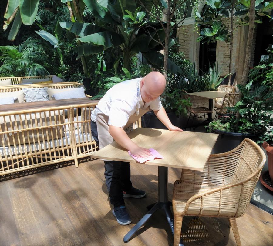 A Foglalkoztatás 2019 pályázat keretében több fiatal is végzi munkagyakorlatát a budapesti Twentysix étteremben. Az oázis hangulatú belvárosi étteremben gyakornokaink éttermi és kávézói kisegítő munkákat látnak el. Az étteremben talán a legfontosabb feladat a szalvéta pótlása, vagyis a szalvétahajtogatás, hiszen az elengedhetetlen a folyamatos és eredményes felszolgáláshoz. Az éttermi feladatok közé tartozik még a terítés, az asztalok fertőtlenítése, mécses és fa-díszek elhelyezése, a székek, párnák eligazítása, és esetenként a mécsestartók tisztítása is.