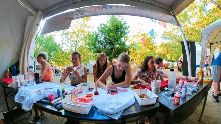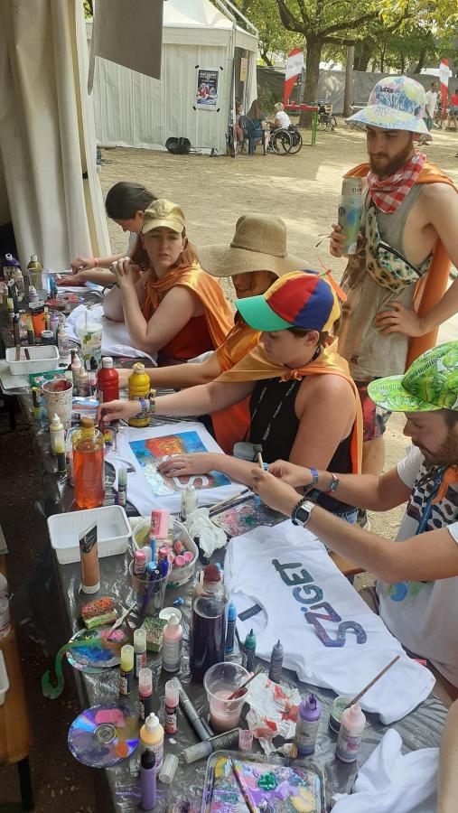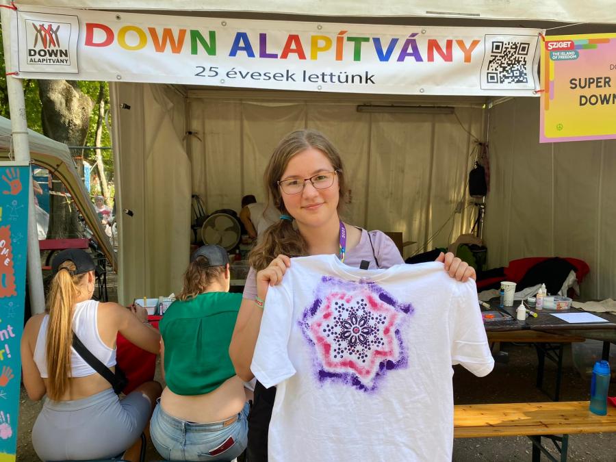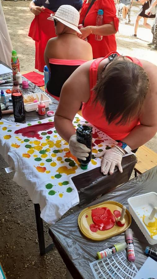 A legnagyobb sikere - mint mindig - a pólófestésnek volt. Nagy volt az érdeklődés a sátrunknál, hihetetlen kreativitással álltak neki és alkottak szabadon a szigetlakó turisták. Közben elbeszélgettek önkénteseinkkel, és a Down-szindrómás résztvevőkkel mindennapi munkájukról, életükről. Tolmácsaink segítségével a külföldről érkezett turistákkal is meg tudtuk osztani kik vagyunk, milyen jó dolgokat csinálunk.