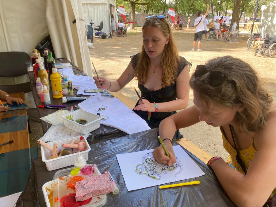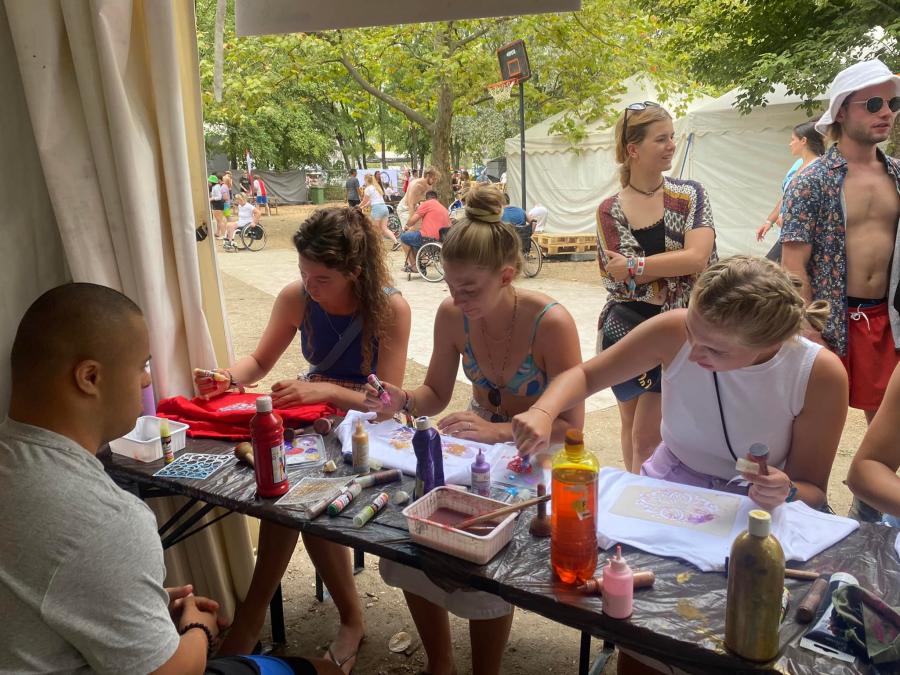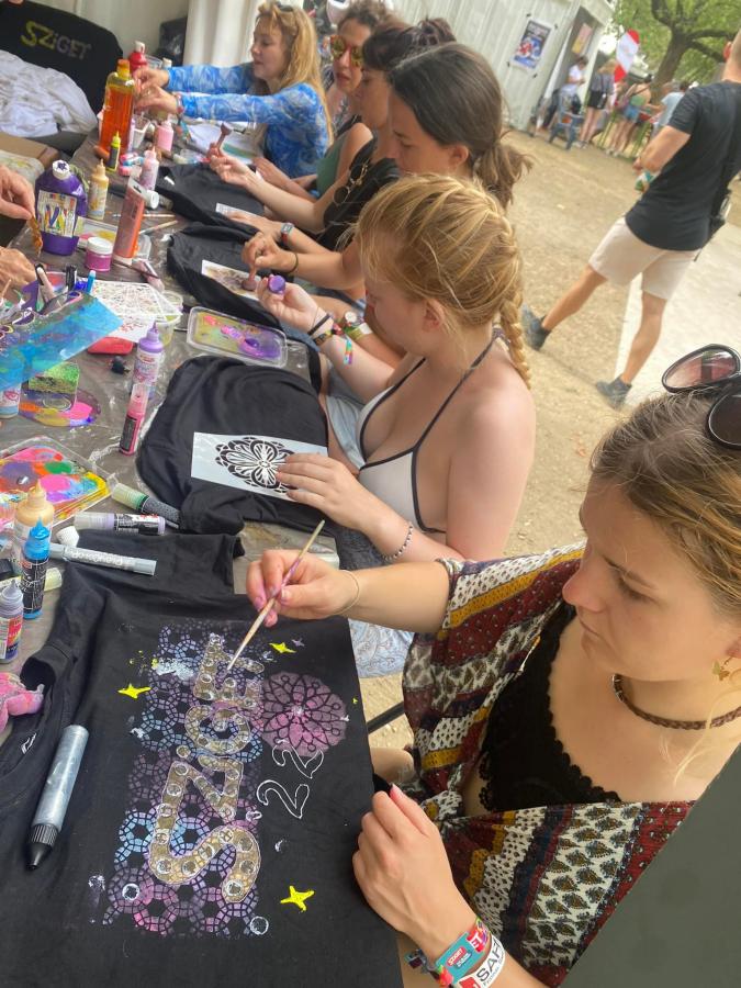 A legnagyobb sikere - mint mindig - a pólófestésnek volt. Nagy volt az érdeklődés a sátrunknál, hihetetlen kreativitással álltak neki és alkottak szabadon a szigetlakó turisták. Közben elbeszélgettek önkénteseinkkel, és a Down-szindrómás résztvevőkkel mindennapi munkájukról, életükről. Tolmácsaink segítségével a külföldről érkezett turistákkal is meg tudtuk osztani kik vagyunk, milyen jó dolgokat csinálunk.