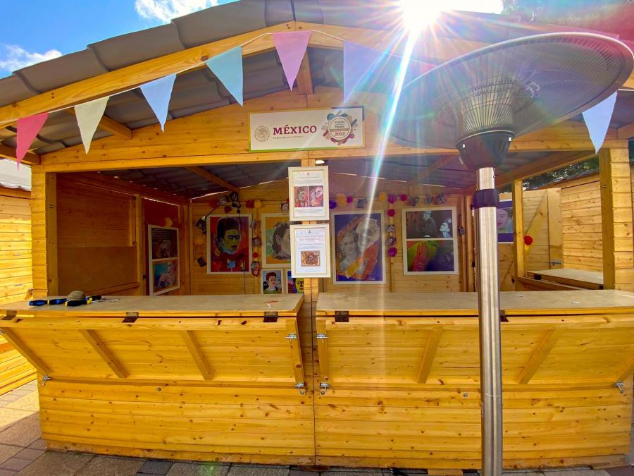 A Mexikói Nagykövetség ránk bízta standjuk berendezését. Először kicsit meglepődtünk, hogy egy kis fabódéba kell kiállítást berendeznünk, de aztán láttuk mennyire csodálatos így is Frida.