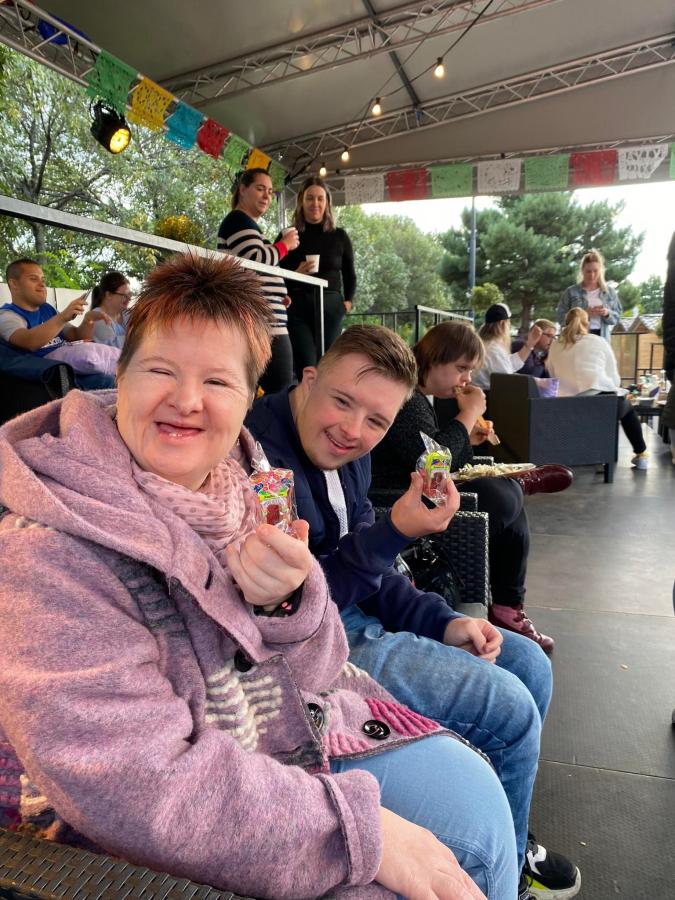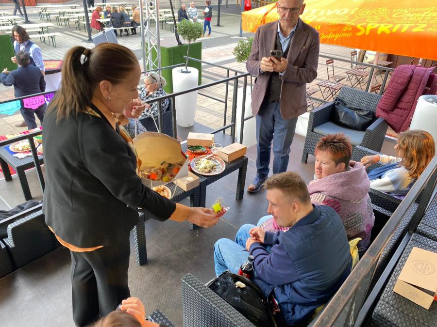 Meghívtak bennünket Down-szindrómás alkotóinkkal együtt a rendezvény megnyitó ünnepségére a VIP részlegbe, ahol Latin-Amerikai ételkülönlegességeket szolgáltak fel. A nagykövet asszony kis ajándékokkal kedveskedett az alkotóknak és kísérőiknek.