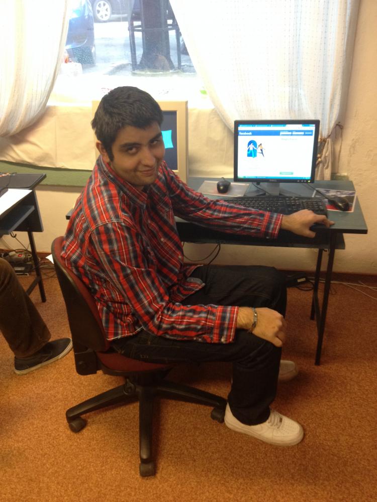 Rácz Zsolt vagyok, 22 éves, Budapesten lakom. Idejárok a Down Alapítványba számítástechnikára, Tibihez.