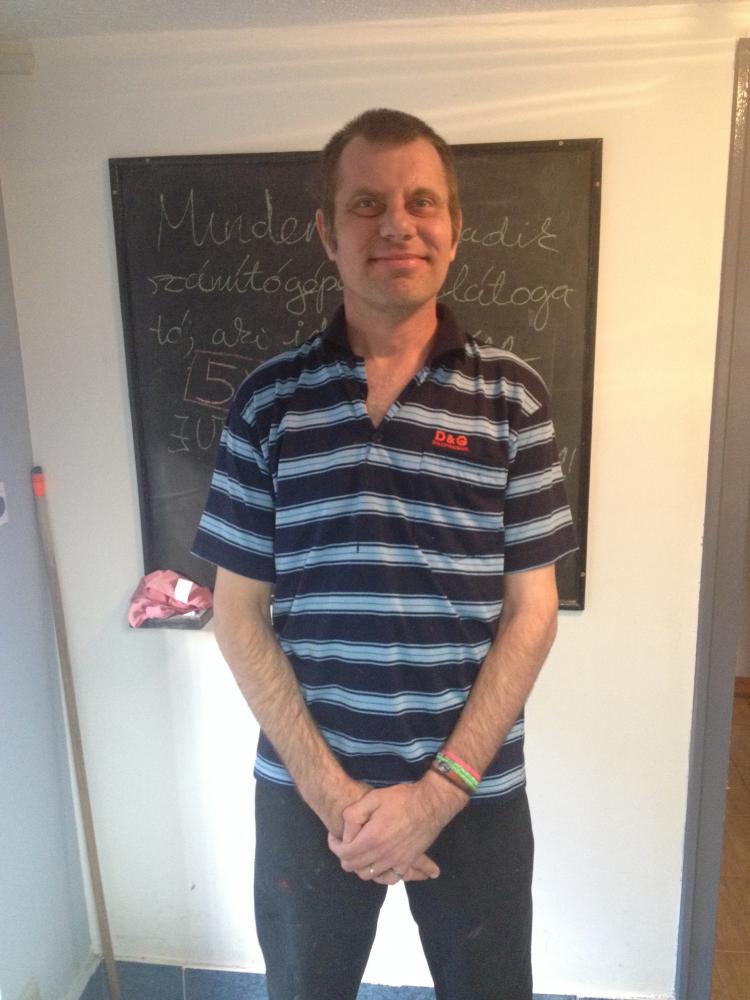 1971-ben születtem Szegeden. Cukrász vagyok, szakácsnak tanultam. Hobbim a zene, rockot hallgatok. A Down Alapítványnál dolgozom, jó itt. Dalmánál dolgozom: festek. Szabadidőmben énekelek, tanmeséket olvasok, verset írok.
