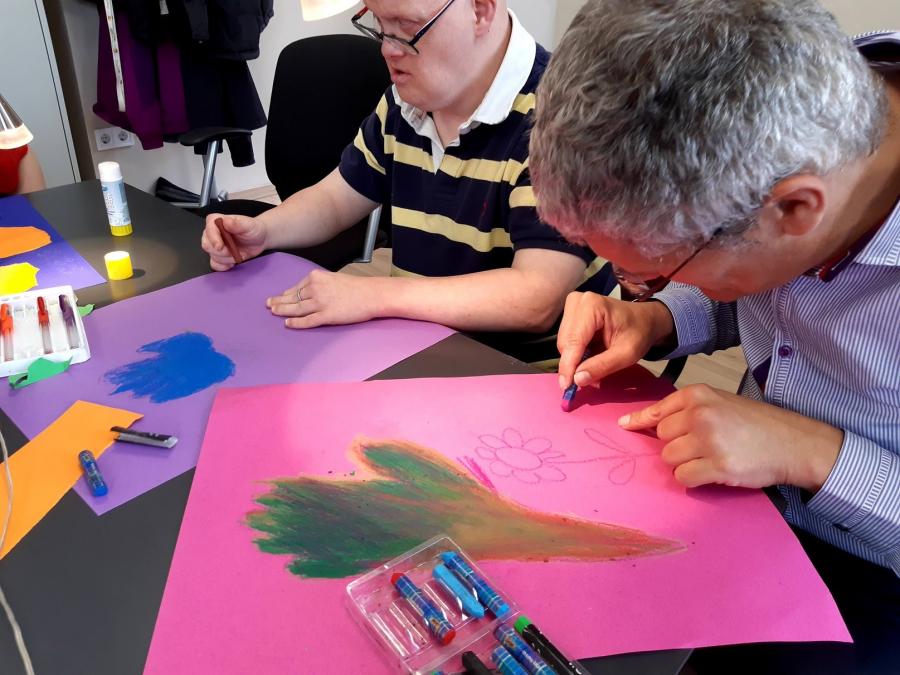 Végre elkezdhettük a kontakt foglalkozásokat a Bocskai úti foglalkoztatóban. Leírhatatlan az a boldogság, aktivitás, alkotóenergia, amellyel visszatértünket fogadták az értelmi fogyatékos résztvevők, azt gondolom nem is lehet! Az alkotások színvilága tagadhatatlanul sugározzák ezeket, a korlátozások időszaka alatt felgyülemlett színkavalkád féktelenül szabadult ma a papírra.
