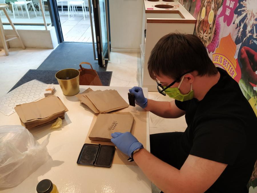 Új gyakornok kezdi munkagyakorlatát a Good Karma étteremben a Foglalkoztatás 2019 pályázat keretében. Máténak megtetszett a munkahelyi látogatás során az étterem, és nagyon várta, hogy megkezdhesse itt a munkát. Nagy lelkesedéssel vetette bele magát a munkahelyi feladatokba: a koordinátor segítségével gyorsan belejött az üdítők felcímkézésébe. A papírzacskók „Good Karma” logóval pecsételése is nagy segítséget jelent az étteremben, hiszen a vendégeknek készített kekszek, apróbb sütemények miatt hamar elfogynak. Jó munkát kívánunk!