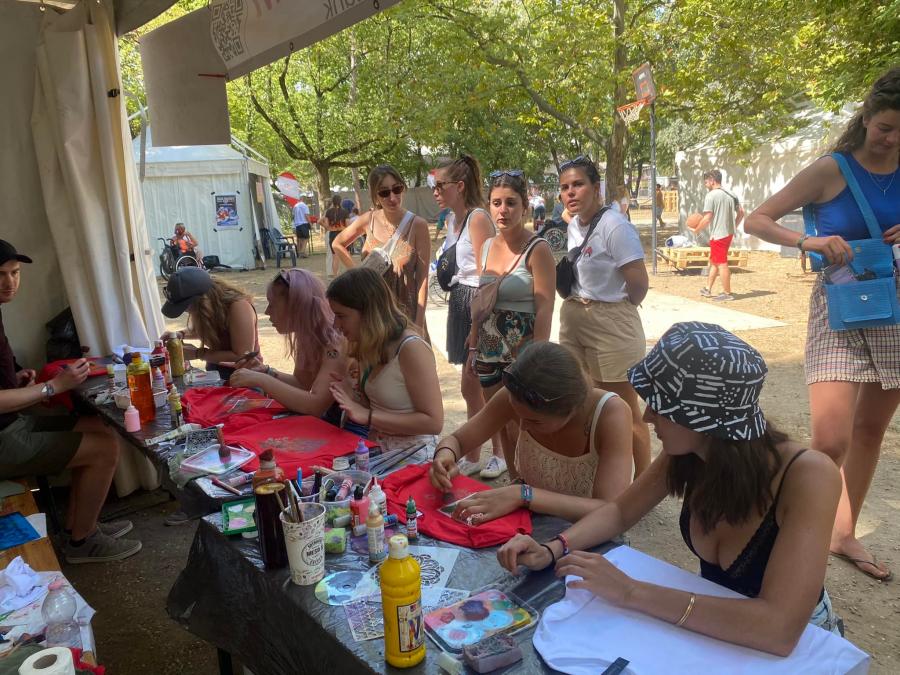 A legnagyobb sikere - mint mindig - a pólófestésnek volt. Nagy volt az érdeklődés a sátrunknál, hihetetlen kreativitással álltak neki és alkottak szabadon a szigetlakó turisták. Közben elbeszélgettek önkénteseinkkel, és a Down-szindrómás résztvevőkkel mindennapi munkájukról, életükről. Tolmácsaink segítségével a külföldről érkezett turistákkal is meg tudtuk osztani kik vagyunk, milyen jó dolgokat csinálunk.