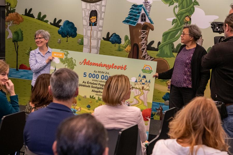 Az Élménynapon Fluck Benedek, az MVM humánerőforrás és szolgáltatási vezérigazgató-helyettese adta át a támogatásról szóló adománylevelet.