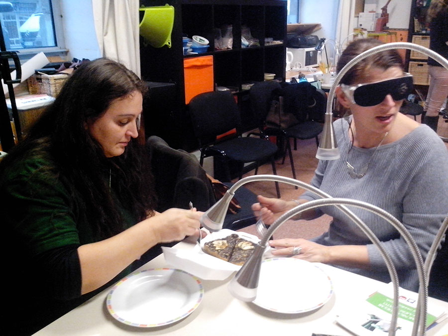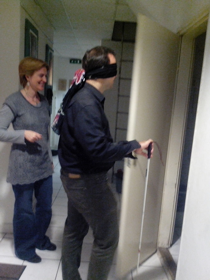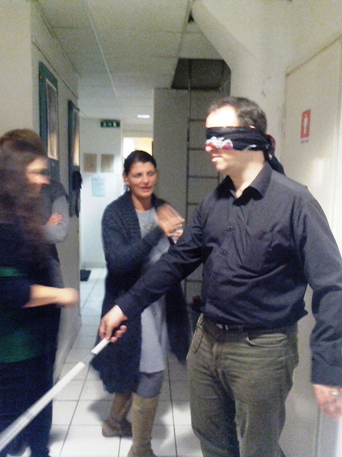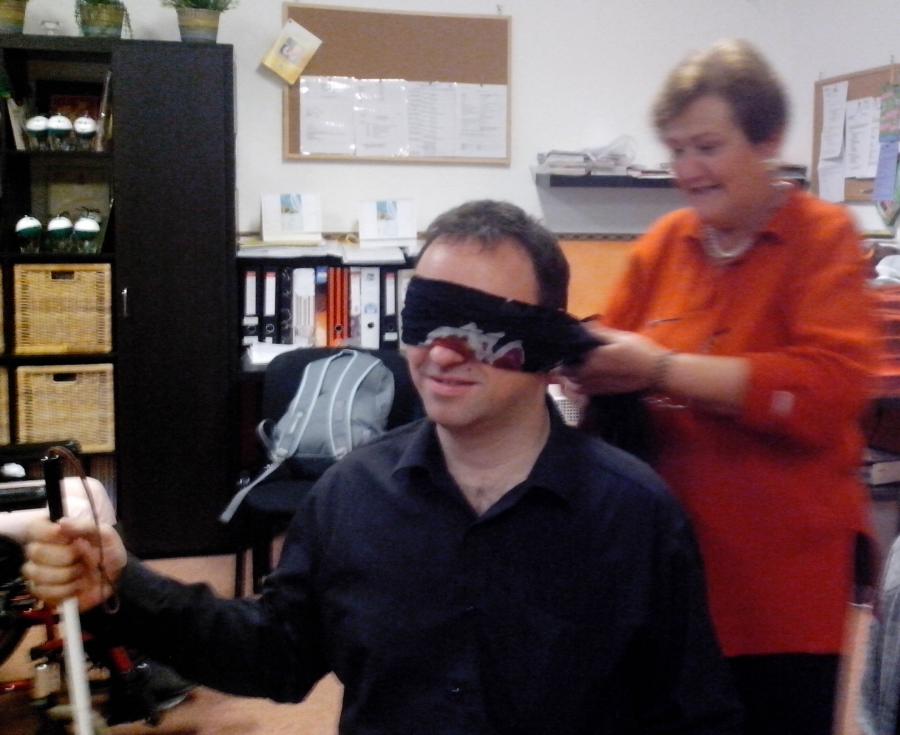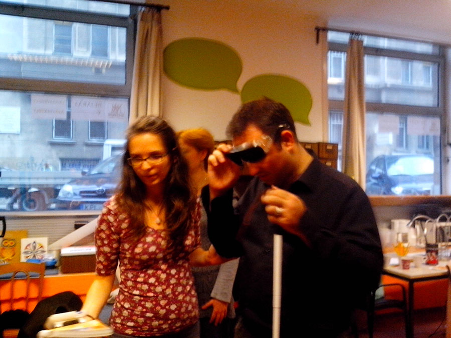 A nap második felében mindenki kipróbálhatta a különböző érzékszervi akadályoztatást. Tréfás feladatokat kellett megoldaniuk a látás, hallás, beszéd, és a mozgás részleges, vagy teljes kiiktatásával. A nap végén mindenki elmondhatta érzéseit, tapasztalatait, véleményét a tréninggel kapcsolatban. Az Erdőmentő Alapítvány tagjai kihangsúlyozták, hogy mind a kiszolgáltatottság, mind a segítő oldalról egyedülálló tapasztalatokat szereztek a feladatok végrehajtása során.