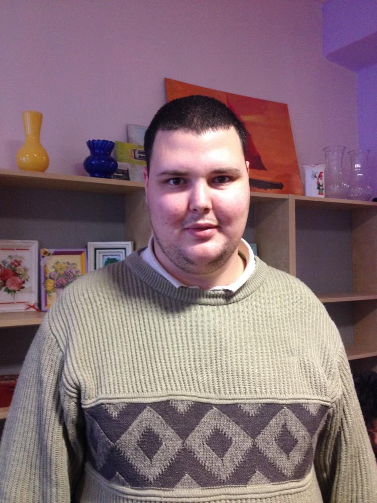 Győrben születtem 1991-ben, 24 éves vagyok. A Down Alapítványnál dolgozom Marcsinál, festeni szoktam és még csiszolni is. Anyuval élek, szabadidőmben segítek anyukámnak sokat.A kutyámmal sokat foglalkozok, és még sokat internetezek is.